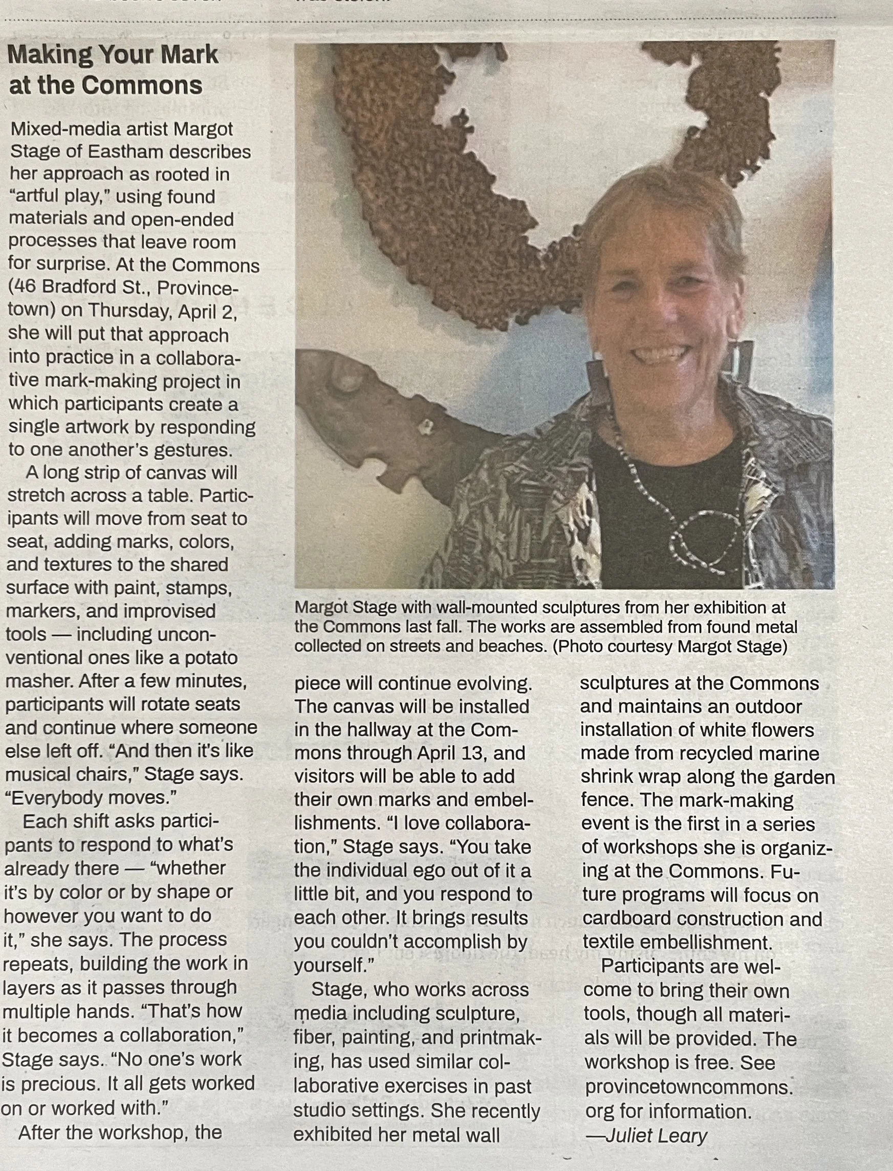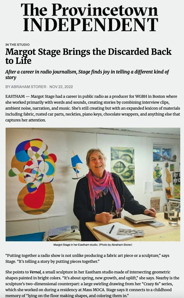 Margot Stage was featured in the Provincetown Independent’s “In The Studio” series that looks at the art practice of Outer Cape artists.